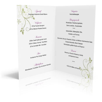 Eine Ranke erscheint auf diesem Design der Menükarten bzw. Speisekarten.